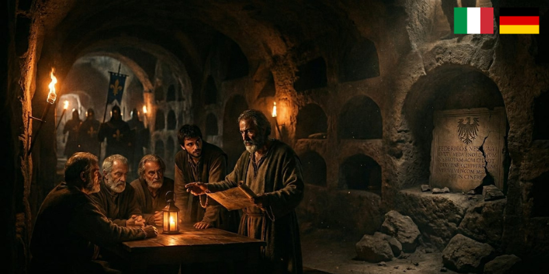 1266. Il sogno politico culturale di Federico II è in cenere, calpestato dai nuovi padroni, gli Angioini. La legge non protegge più: schiaccia. Ma se vi dicessi che lo Stato più moderno del Medioevo non è svanito nel nulla? Che si è solo rifugiato nel buio, tra le ombre delle Catacombe di una città siciliana. Siete pronti a scendere a cercarlo?"